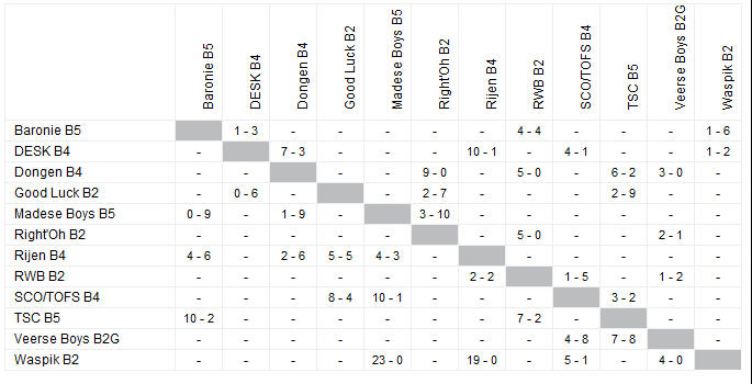 Later hoorden we dat het er bij andere teams een stuk fanatieker aan toe ging, mensen met bezwete voorhoofden, tikkertje spelende veertigers en Twan die een flinke smak maakte en door de brandnetels rondtolde. Hans Tan was met heel andere dingen bezig en handelde telefonisch urgente kwesties af. Enfin, aan het eind van het liedje hadden beide teams een keer gewonnen en maakten we ons op voor de terugreis die wederom langs drassige moerassige paden voerde.