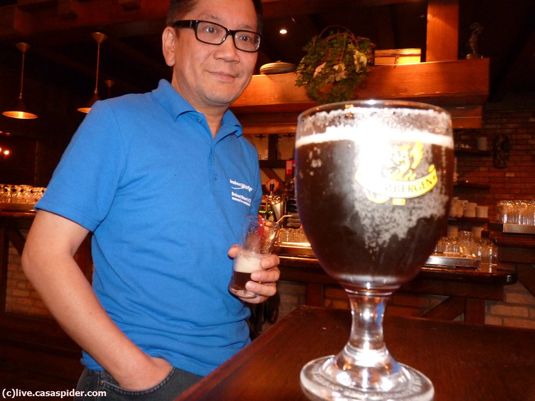 Om een uur of zes begon een aantal mensen (v) koude voeten te krijgen. Ook de hongerklop sloeg toe en bovendien had ik enorm veel zin in een biertje. We spoedden ons naar het restaurantgedeelte waar een enorm buffet stond uitgestald. Het bier mochten we zelf tappen en er was nog trappist van Grimbergen ook. Op dergelijke momenten blijkt dat Openbaar Vervoer ook zijn voordelen heeft.